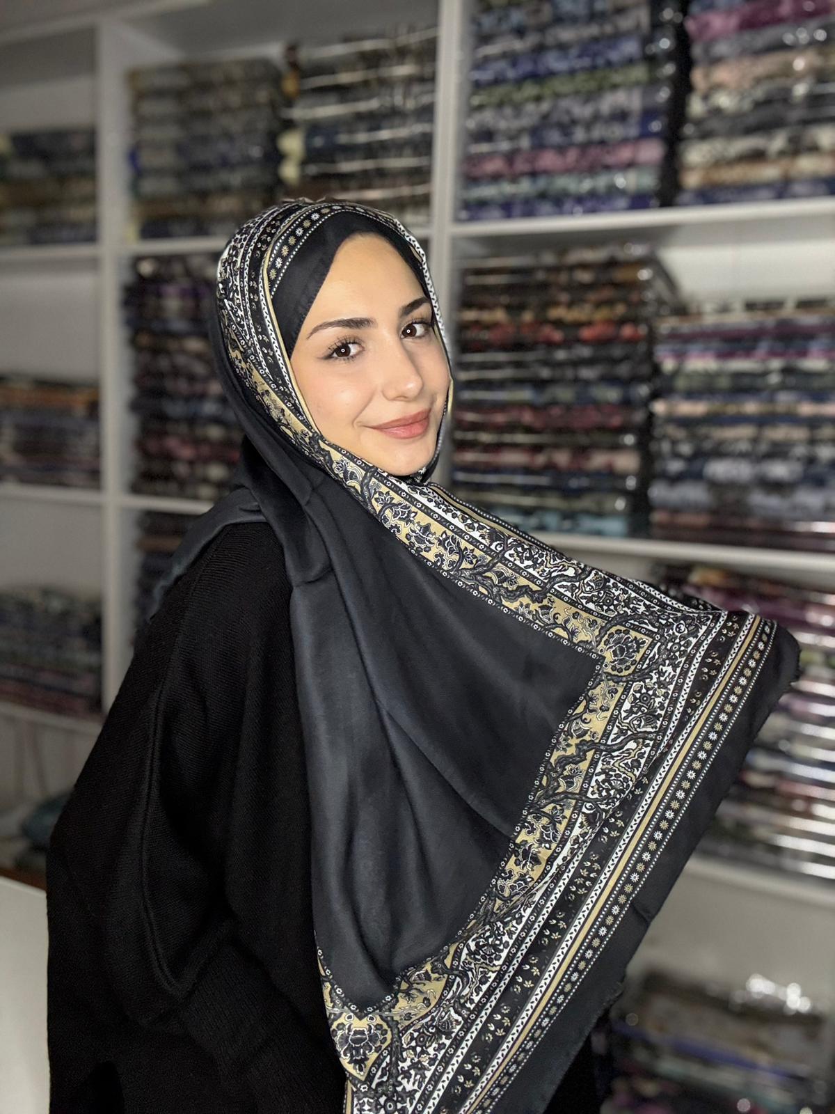Pamuk İpek Şal Bohem Siyah Gold