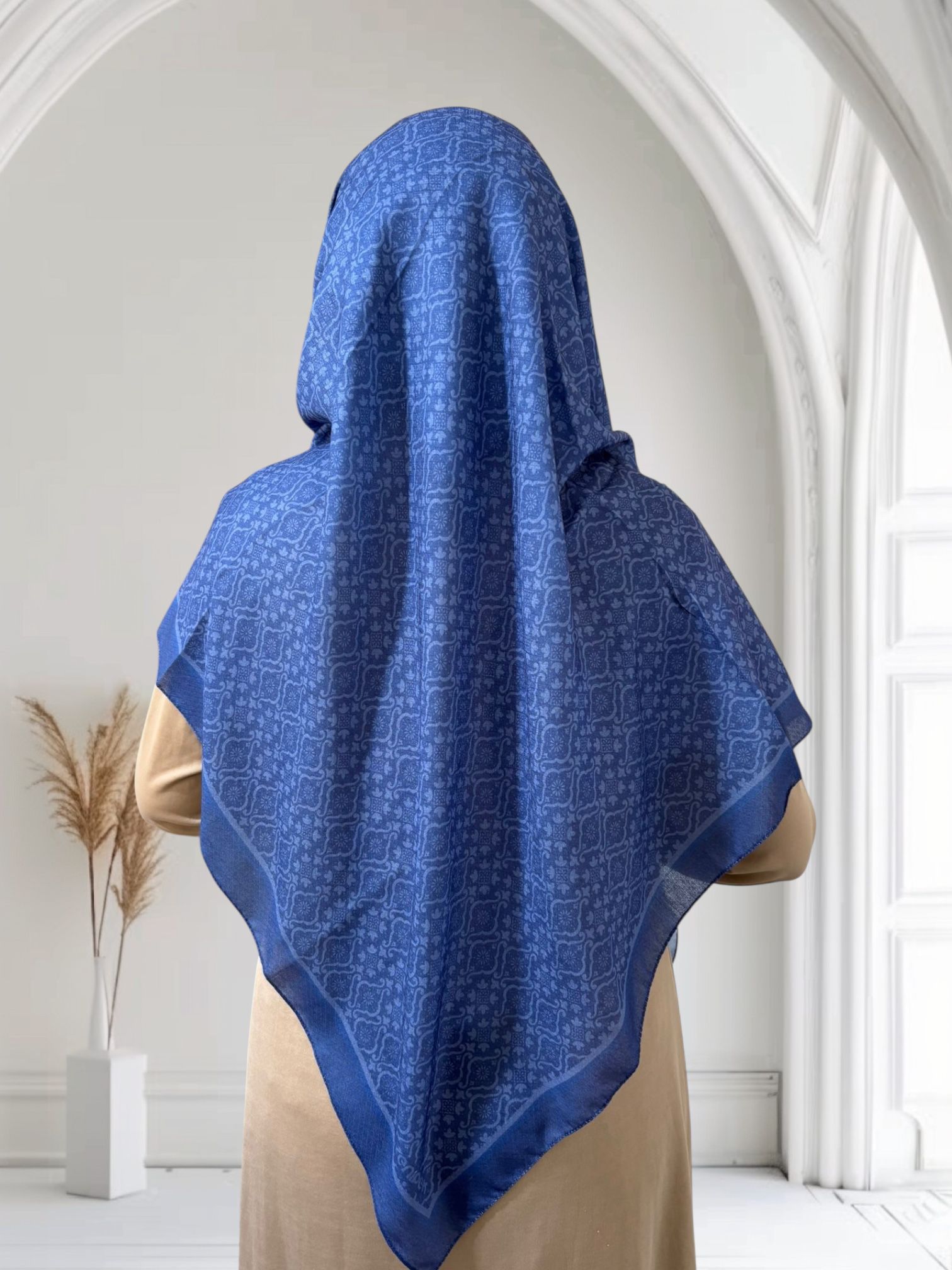 Pamuklu 120cm x 120cm Eşarp Nilüfer Mavi